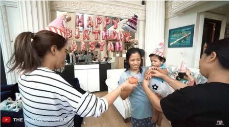Setelah tiup lilin dan menyanyi, semua yang ada di ruangan itu diajak foto bareng sama Ashanty. Pesta ulang tahun sederhana ini bikin ibu Aisyah gak nyangka.