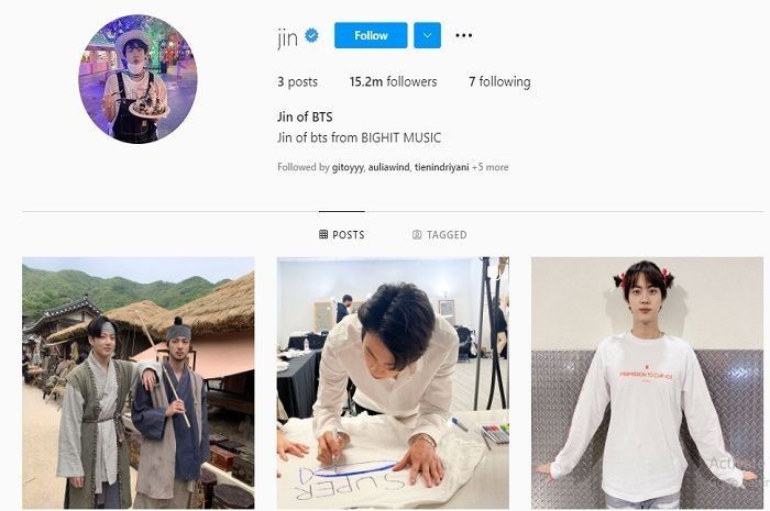 Instagram jin BTS (jaktimnews.pikiran-rakyat.com)