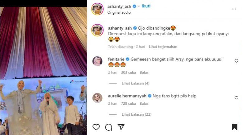 Arsy Hermansyah Nyanyi “Ojo Dibandingke” di Acara Pesantren, Warganet Beri Kritikan (Instagram @ashanty_ash)