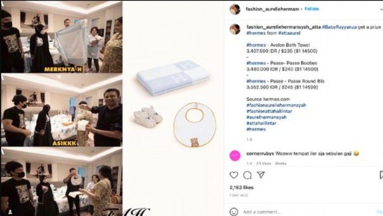 Sontak, unggahan tersebut langsung menuai banyak komentar dari para netizen. Terlihat Atta dan Aurel memberikan hadiah berupa handuk 'Avalon Bath Towel' dibanderol dengan harga Rp 3,4 juta. Sedangkan untuk sepatu bermerek 'Passe-Passe Booties' seharga Rp 3,4 juta dan celemek 'Passe-Passe Round Bib' seharga Rp 3,5 juta.