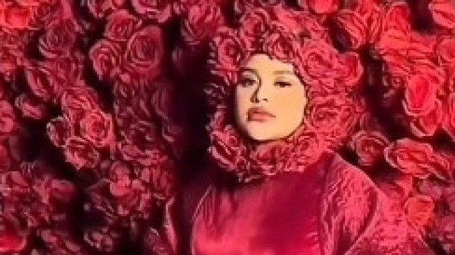 Dari video yang beredar, terlihat dirinya sedang memakai gaun merah dengan latar berwarna serupa yang penuh bunga mawar. Ia lalu berpose sembari mengelus perutnya dan menatap arah kamera.