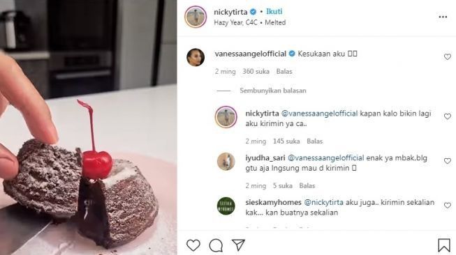 Kala itu, Nicky memposting foto kue buatannya dan Vanessa pun memberikan komentar. "Tiga hari sebelum beliau berpulang sempet ngasih komen di Instagram, saya waktu itu bikin lagi lava cake," ungkap Nicky Tirta di kawasan Gandaria, Jakarta Selatan baru-baru ini.