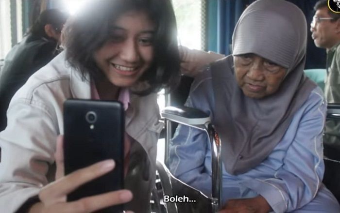 Amel kemudian mendekati Nining yang duduk di kursi roda. Hati Amel bergetar, maklum dirinya akan bicara dengan ibu dari Nike. Namun Amel berusaha tenang saat mendekat.