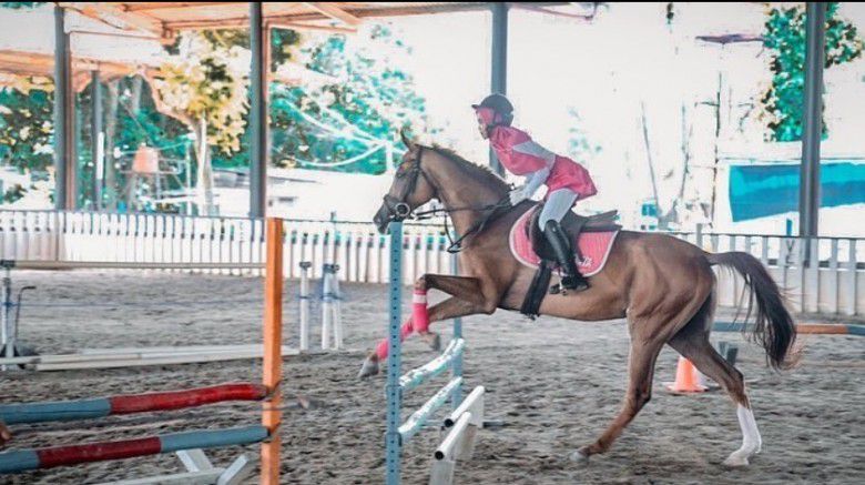 Tak hanya sekedar mengendarai kuda, Ria Ricis juga berlatih mengendalikan hewan tersebut saat melewati berbagai rintangan sulit.