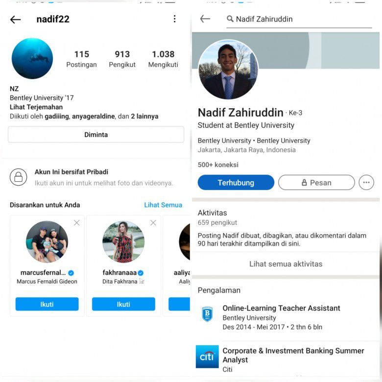 Nadif juga pernah magang sebagai Invesment Banking Intern di Danareksa Securities pada Juni hingga Agustus 2015.