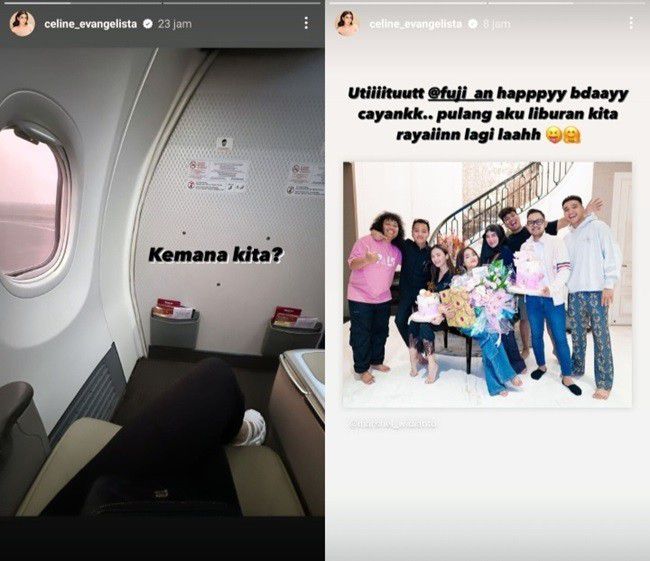 Hal ini terungkap saat Celine berbagi unggahan spesial di hari ulang tahun Fujianti Utami. Celine Evangelista memberi ucapan ulang tahun dan berjanji bakal merayakan pertambahan usia Fuji sepulangnya dari liburan nanti.