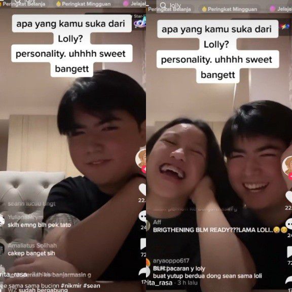 Cuplikan video live Sean dan Lolly yang diunggah akun TikTok @lili1512906 ini sudah ditonton lebih dari 976 ribu kali. Di kolom komentarnya, banyak netizen yang mengaku ikut tersenyum melihat kedua remaja yang sedang kasmaran tersebut.