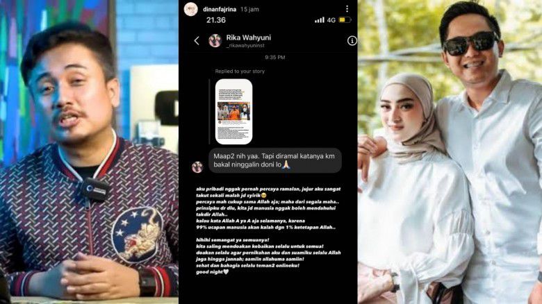 ”Aku pribadi nggak pernah percaya ramalan. Jujur aku sangat takut sekali malah jadi syirik, percaya mah cukup sama Allah saja. Maha dari segala Maha. Prinsipku dari dulu, kita jadi manusia enggak boleh mendahului takdir Allah, Kalau kata Allah A ya A saja selamanya. Karena 99 persen ucapan manusia akan kalah dengan 1 persen ketetapan Allah,” ucap Dinan Fajrina di Instastory-nya.