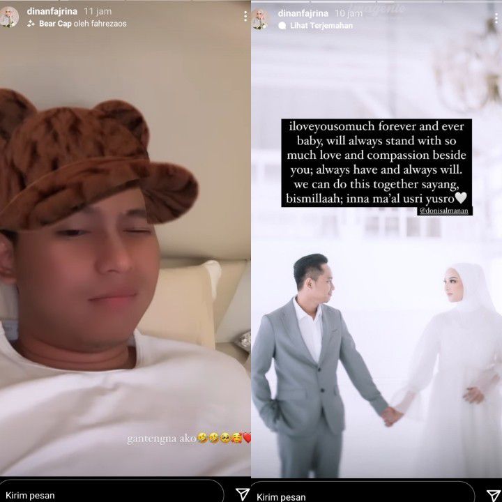 “Aku sangat mencintaimu selamanya dan seterusnya sayang, aku akan selalu berdiri dengan begitu banyak cinta dan kasih sayang di sampingmu. Selalu dan akan selalu. Kita bisa bersama-sama sayang, bismillah, inna ma'al usri yusro,” tulis Dinan Fajrina dengan Bahasa Inggris.