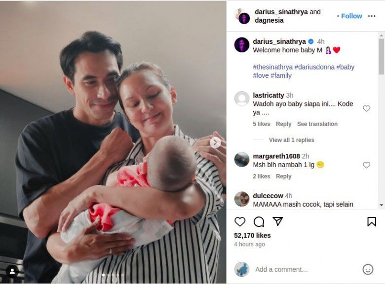 "Welcome home baby M," begitu bunyi keterangan di unggahan Darius Sinathrya.