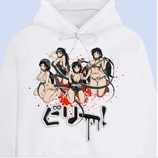 Tampak anime dengan pakaian bikini serta tulisan nama Eilish dalam Bahasa Jepang. Yang melihat sekilas mungkin ngira nggak ada yang salah dengan karakter anime di hoodie itu. Tapi ternyata mereka yang suka ngeliat anime langsung tau kalo itu adalah artwork punya Makoto Kurokawa.