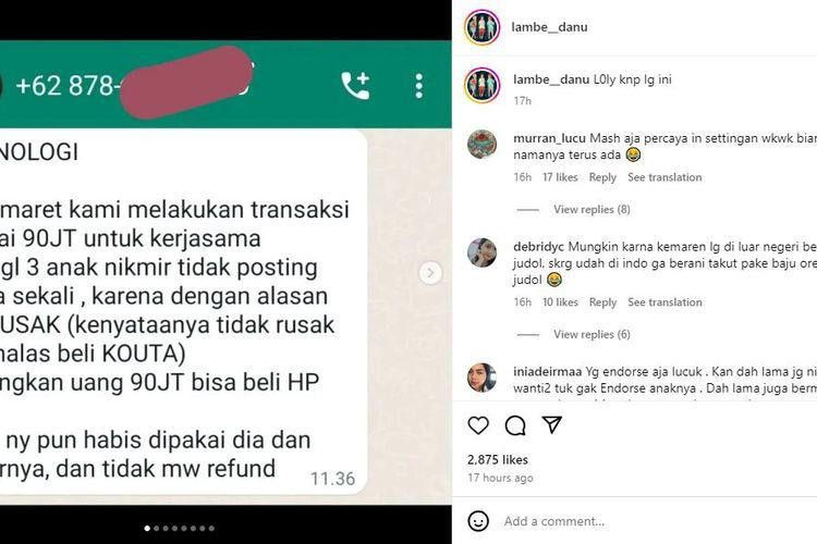"Saya mengakui kesalahan saya atas kerja sama slot yang di lakukan saat saya berada di UK dan saat saya di Indonesia memberhentikan kerja sama," ujar Lolly di IG Stories.