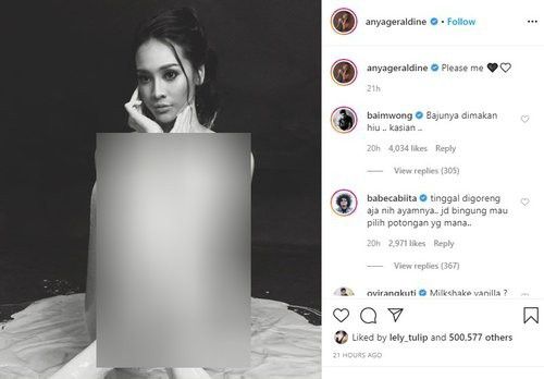Dengan tulisan "Please Me" yang kemudian langsung membuat hebohpenggguna sosmed. Banyak dari netijen langsung menuliskan komentarnya pada foto terbaru Anya itu. Tak ketinggalan sederet selebitis turut berkomentar diantaranya adalah Baim Wong.