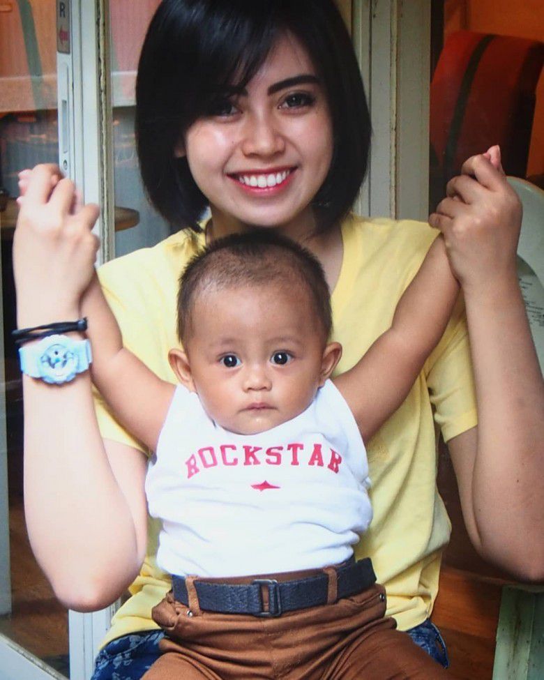 Istri Yama Carlos, Arfita Dwi Putri dan anaknya. (Instagram @yamacarlos7)
