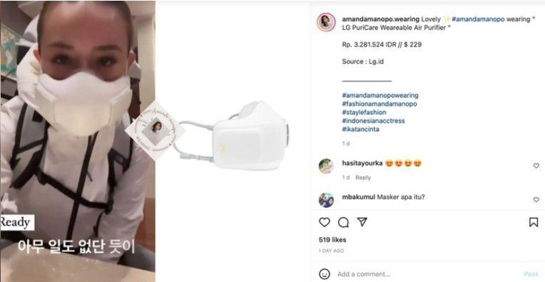 Masker mahal yang dikenakan Amanda Manopo (wolipop.detik.com)