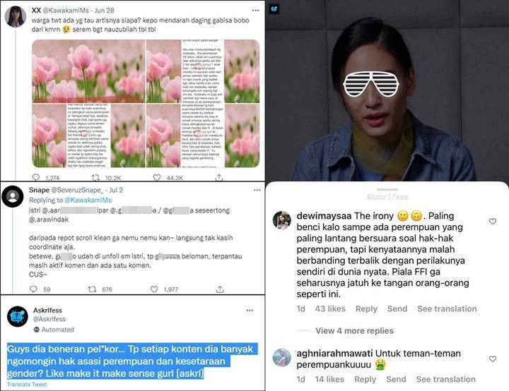 "lagaknya ngomongin pergerakan perempuan, padahal aslinya nyakitin perempuan juga," ketik netizen.