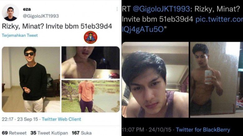 Dalam postingan tersebut, artis kelahiran 1995 itu diduga menawarkan jasa sebagai pria panggilan. Memakai nama Rizky, ayah satu orang anak itu juga mencantumkan pin BBM. "Rizky, Minat? Invite bbm51eb9d4," begitu keterangan yang tercantum di cuitan tersebut.