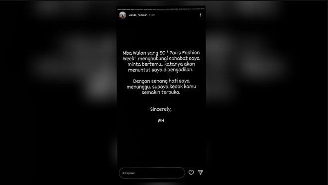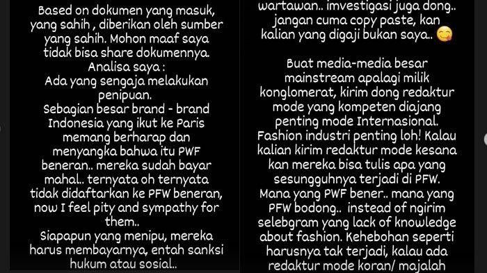 Stories Wanda Hamidah yang membahas penipuan yang libatkan Paris Fashion Week (sumsel.tribunnews.com)