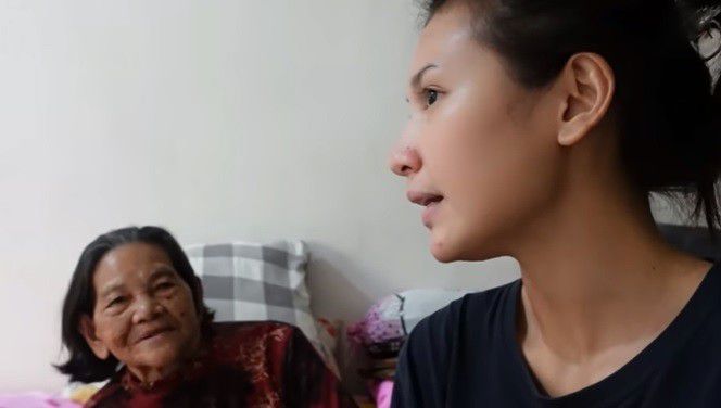 Indah juga bertemu dengan neneknya yang sudah berusia 80 tahun. Indah mendatangi kamar sang nenek dan mengobrol banyak hal. Ia juga sempat memijat kaki neneknya dengan penuh kasih sayang. “Nenek aku ini dulu tinggal di Toraja, aku waktu kecil suka datang ke sana,” papar Indah.