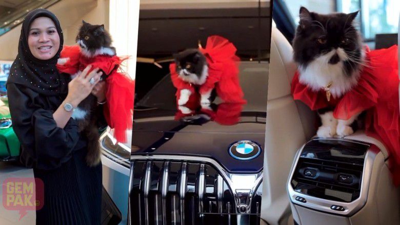 Ia pun mengunggah video di Instagram ketika mengajak kucing kesayangannya ke dealer mobil untuk melihat mobil BMW i7 berwarna hitam. Bahkan kucing yang diberi nama Money itu juga terlihat memakai baju berwarna merah.