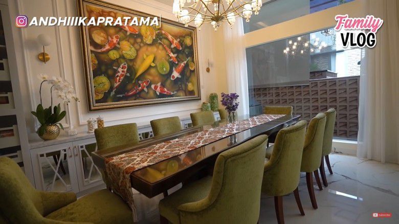 5. Sesuai temanya, gaya klasik dan elegan juga harus sampai ke ruang makan. Coba deh tengok meja, kursi, dan chandelier (lampu gantung) di ruang makan mereka, elegan abis!