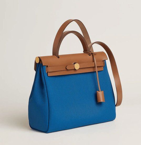 Herbag menggunakan bahan kanvas tebal dengan struktur modular yang bisa dilepas-pasang, menjadikannya pilihan serbaguna untuk kegiatan harian maupun perjalanan. Dilengkapi tali bahu panjang yang dapat dilepas, tas ini memadukan fungsi dan keanggunan khas Hermes.