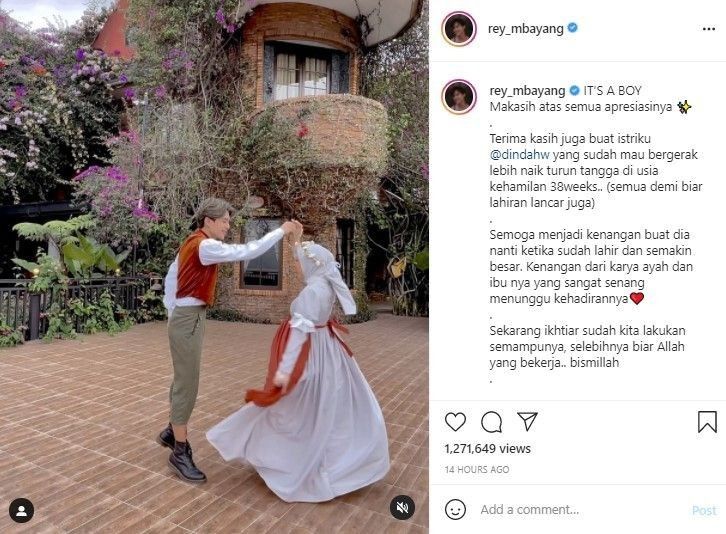 Melalui postingan instagram, Rey Mbayang mengumumkan jika jenis kelamin buah hatinya adalah laki-laki. "IT’S A BOY. Makasih atas semua apresiasinya ✨," tulis suami Dinda Hauw itu pada Jumat (19/6/2021). Tak lupa Rey juga menuliskan perasaannya kepada sang istri di postingan tersebut. "Terima kasih juga buat istriku @dindahw yang sudah mau bergerak lebih naik turun tangga di usia kehamilan 38weeks.. (semua demi biar lahiran lancar juga)," tambahnya.
