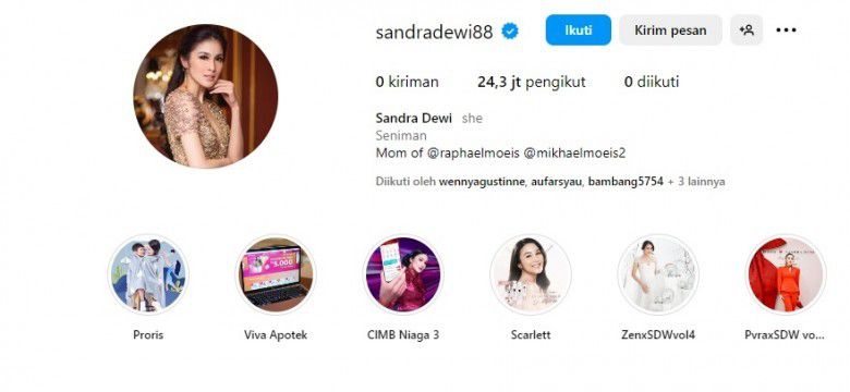 Akun Instagram Sandra Dewi @sandradewi88 kembali aktif setelah sekitar sebulan menghilang di sosial media. Diduga akun Instagram tersebut sempat tidak aktif karena kasus yang menimpa Harvey Moeis, suami Sandra Dewi.