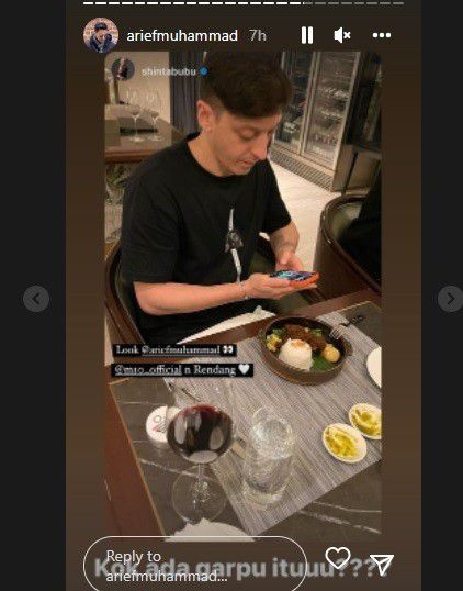 Dlaam foto yang diunggah di Instagram Story, Arief mengkritik Ozil yang makan rendang menggunakan garpu. Diduga Arief sebagai Duta Nasi Padang menilai makan rendang menggunakan garpu adalah cara yang salah. Seharusnya Nasi Padang dimakan menggunakan tangan.