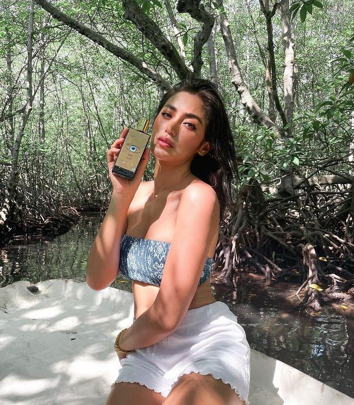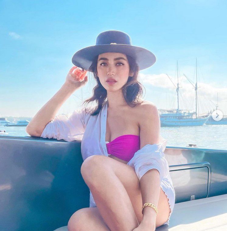 Foto lain yang juga menarik perhatian adalah saat Jedar berpose di sebuah kapal. Dia tampak mengenakan bra warna pink yang dipadu dengan celana putih dan outer dengan warna senada.