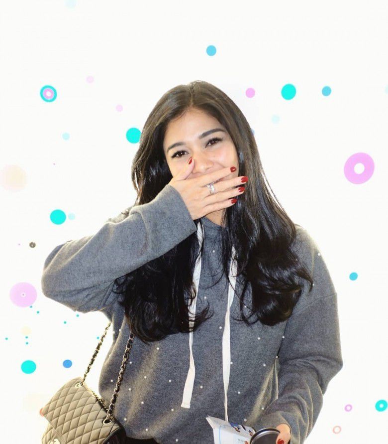 Dimulai dari gaya santai. Naysilla tampak mengenakan hoodie dan tas warna coklat. Keliatan kece banget, ya.