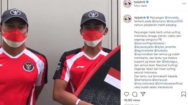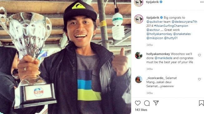 "Terimakasih sebesar besarnya untuk fans surfing di seluruh Indonesia dan dunia, surfing is fun dan tidak menakutkan," tulis Tipi Jabrik sebagai caption di postingan Instagram-nya, Senin (26/7/2021).