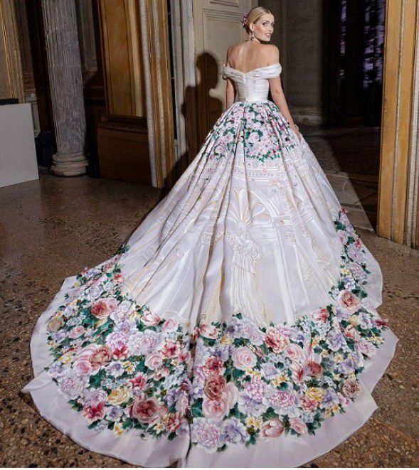 Dari berita yang beredar, sosialita dan model berusia 30 tahun tersebut mengenakan beberapa busana karya Dolce & Gabbana di hari pernikahannya. Secara total, ia memesan 5 gaun mewah untuk dikenakan pada setiap rangkaian pernikahannya, mulai dari upacara, gala dinner dan lain-lain.