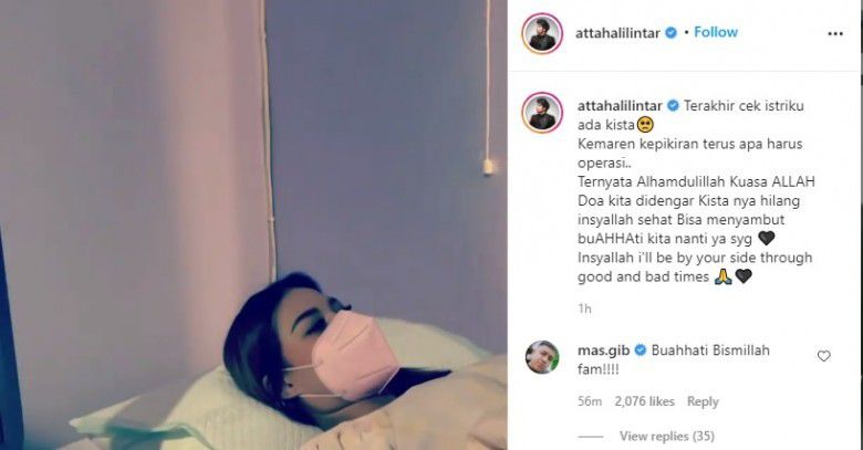 Pengantin baru ini pun berdoa dan berharap agar kista tersubut hilang. "Ternyata Alhamdulillah Kuasa ALLAH Doa kita didengar Kista nya hilang," tambah Atta.
