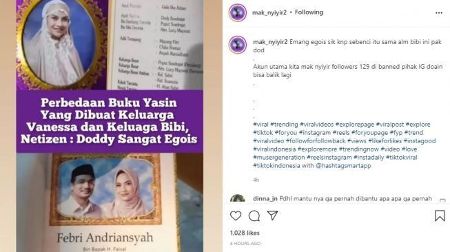 "Yang jelas sudah jadi buku Yasinnya seperti itu. Fotonya Vanessa tidak ada foto Bibi. Tapi jangan dipermasalahkan itu karena nanti doa bersama namanya akan tetap kita sebut Febri Andriansyah bin Faisal," jelas Doddy.