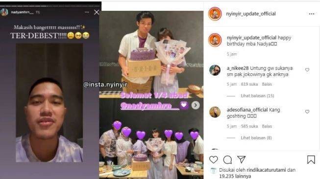 "Kalian terlalu fokus sama yang ulang tahun sampai nggak fokus sama tangan Kaesang. Merangkul sosok yang mirip budhe (Nadya Arifta)," ujar netizen lainnya.