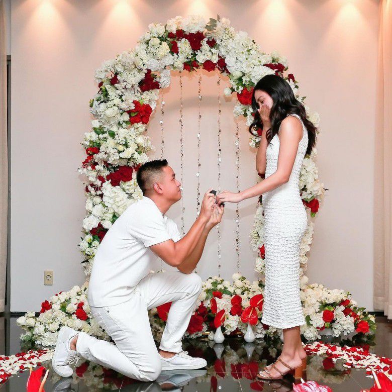 Tampak Fabian sedang berlutut sembari memberikan cincin lamaran kepada Citra Aulia.