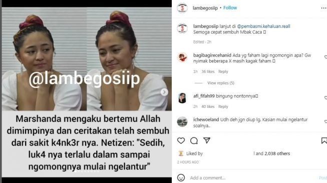 Cuplikan video Marshanda itu pun seketika menuai banyak komentar. Banyak netizen yang merasa kasihan dengan kondisi wanita yang akrab disapa Caca itu karena terlihat aneh.