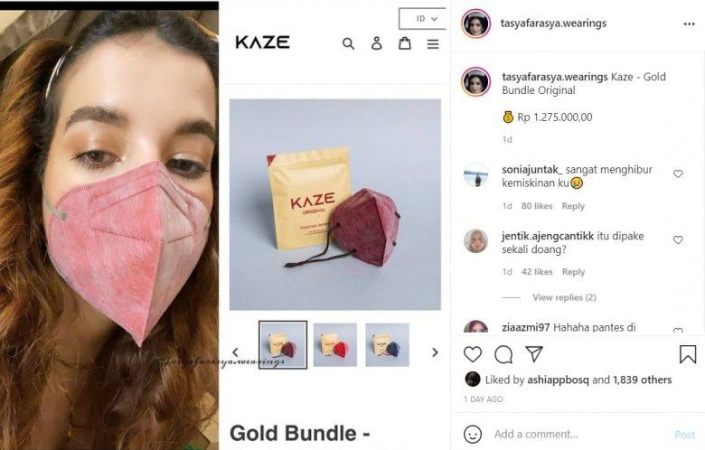 Ya, masker yang dipakai Tasya Farasya itu berasal dari merek Kaze dengan jenis KN95. Dengan nama ‘Gold Bundle Original’, masker itu dibanderol sekitar Rp 1,2 juta.