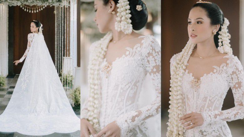 Tampak artis bernama asli Ayunda Faza Maudya ini membagikan tiga foto cantik dirinya dengan dibalut kebaya berwarna putih. Di foto lainnya, gaun pengantin itu terlihat dibuat dengan detail cape panjang yang menjuntai sampai lantai.
