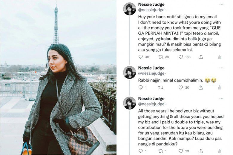 Dalam cuitannya, wanita kelahiran 1993 ini menyinggung soal notifikasi bank milik Bram yang masih terhubung ke email milik Nessie. Secara terang-terangan, Bram dituding telah mengambil banyak uang milik Nessie.