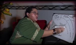 Mbak you kemudian menggambarkan ombak yang akan menerjang daratan dan menjelaskan adanya gempa bumi dan pergerakan tanah.