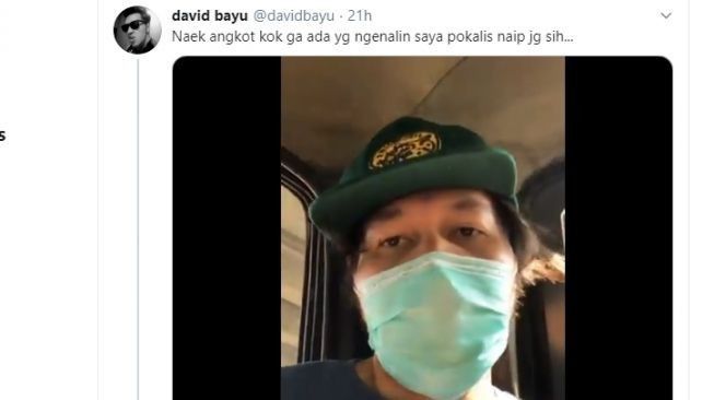 David Bayu atau yang dulu dikenal dengan nama David Naif ini pernah mengunggah foto dirinya sedang naik angkot. David mengenakan masker di dalam angkot. Ia mengaku tak ada satupun penumpang yang menyadari jika dirinya adalah seorang publik figur.