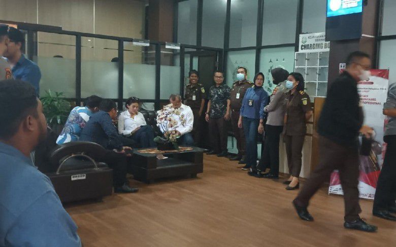 Nikita Mirzani di Kejari Serang dalam rang pelimpahan berkas (sumeks.disway.id)