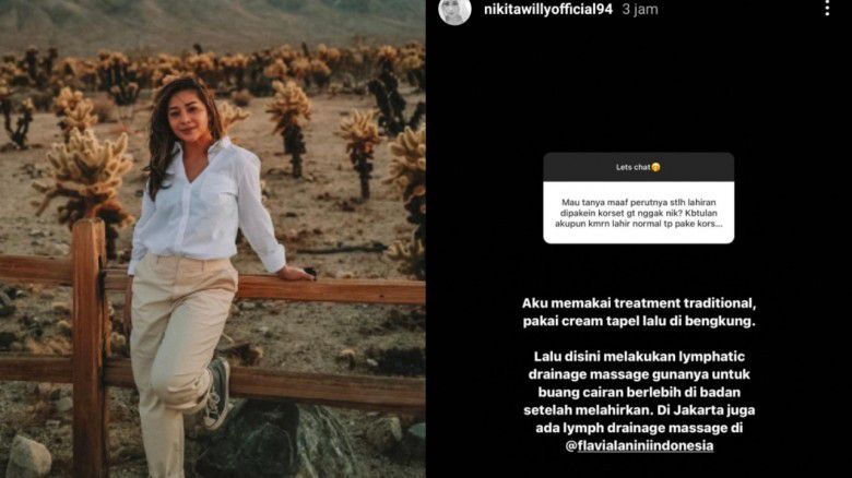 Tapi tidak hanya itu saja, Nikita Willy juga melakukan perawatan yakni pijatan di bagian perut yang berguna untuk membuang cairan di dalam tubuh. “Lalu disini lymphatic draninage massage gunanya untuk buang cairan berlebih di badan setelah melahirkan,” tandas Nikita Willy.