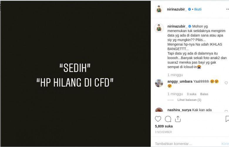 Nirina Zubir sendiri sempat kehilangan HP sebelum sang ibunda meninggal. Hal itu terlihat lewat unggahannya di Instagram.
