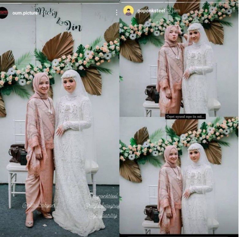 Dalam foto tersebut, Nissa tampak berpose dengan pengantin yang mengenakan busana serba putih. Dengan busana kondangan yang cukup menawan, perempuan bernama asli Khoirunnisa itu tampak tersenyum ke arah kamera.