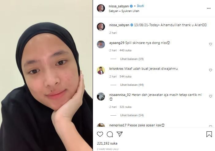 Nissa Sabyan Pamer Wajah Glowing, Netizen Berikan Reaksi Sinis (Instagram)