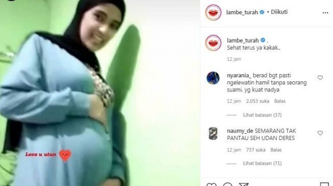 Unggahan Nadya Mustika tentang kehamilannya yang dibagikan oleh akun Lambe_Turah (suara.com)