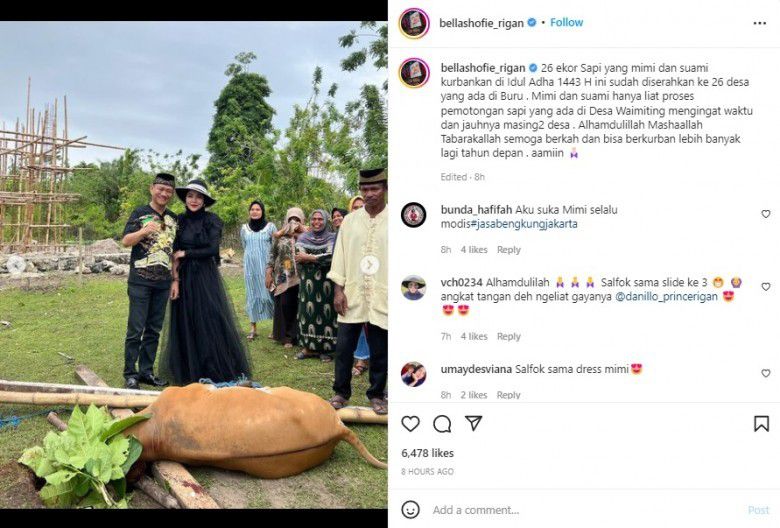 "Outfitnya gak nyambung hadehh," komentar netizen. "Bajunya kayak mau pesta tapi, heboh banget," sambung netizen. "Ditempat sembelihan pake dress begono, ibuibu disana kek gimanaaa pasti," sambung netizen. "Mimi mohon maaf bisa konsultasi dengan para yang mengerti fashion, pada saat momen Lebaran Idul Adha baiknya gimana," timpal netizen lainnya.